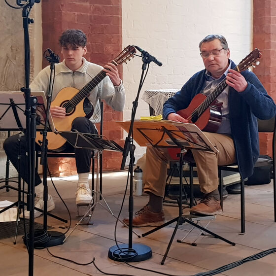 Musikalisch gestaltet wurde der Gottesdienst von den Musikern Jakob Daum und Siegfried Clasen, die zusammen das Gitarren-Duo „Saitenspiele“ bilden, und Gesine Knappe an der Orgel.