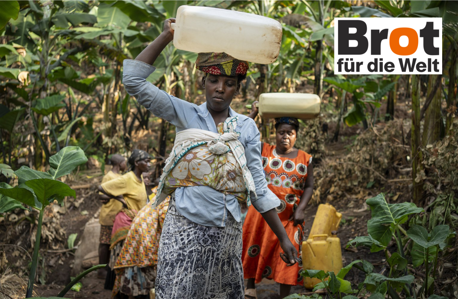 Ein Tank für Regenwasser, der seit 2020 auf ihrem Grundstück steht, hat ihr Leben verändert: „Ich spare mir die langen Wege und damit viel Zeit“, erklärt die Bäuerin. Ihr jüngster Sohn Levison, der erst drei Monate alt ist, hört ihr mit großen Augen zu. Den Regenwassertank verdankt die Familie der ugandischen Hilfsorganisation ACORD („Agency for Cooperation and Research in Development“), einer Partnerorganisation von Brot für die Welt. „Die Familien bekommen die Regenwassertanks nicht einfach geschenkt“, stellt Projektmitarbeiterin Olivia Nakaweesa klar.