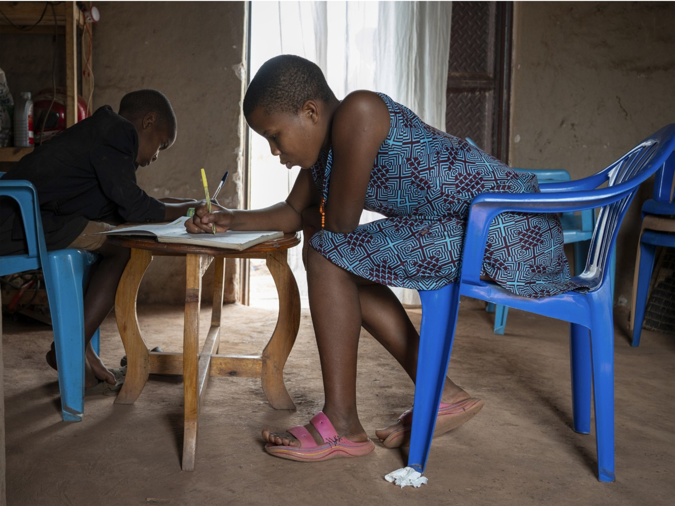 Immaculate und Davis nutzen die Zeit bis zum Mittagessen, um für die Schule zu lernen. Beide haben schon ein klares Ziel vor Augen: „Ich möchte Lehrerin werden“, sagt Immaculate, „damit ich anderen etwas beibringen kann.“