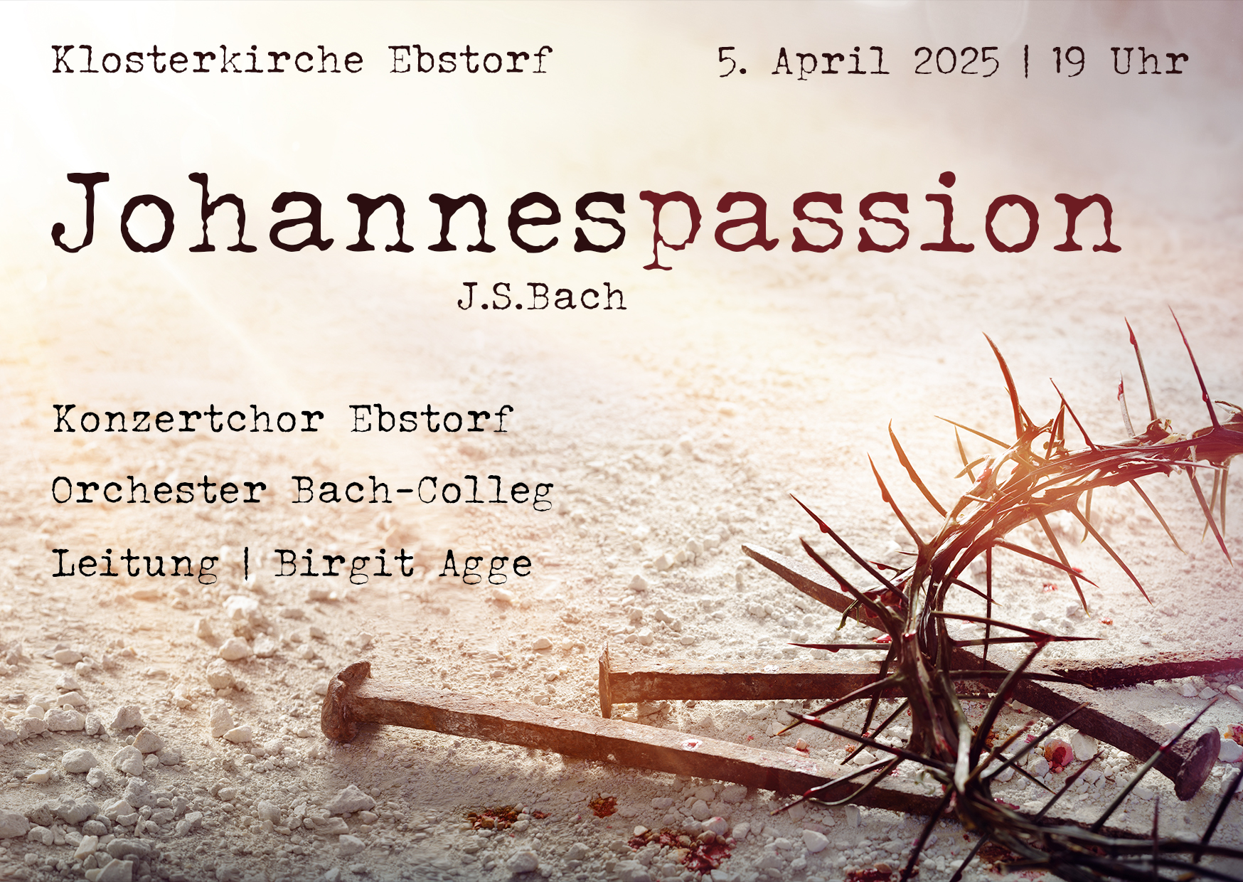 Die Johannespassion zählt neben der Matthäuspassion, dem Weihnachtsoratorium, dem Magnificat und der h-Moll-Messe zu den großartigsten Vokalwerken Johann Sebastian Bachs und braucht sich dahinter keinesfalls zu verstecken. Es gibt wohl keine weitere Vertonung der Passionsgeschichte, in der dem Zuhörer das Leiden und Sterben Jesu so eindringlich vermittelt wird, dass er sich selbst an Ort und Stelle versetzt fühlt. Diese äußerst dramatische Komposition wird durch die besonderen Gegebenheiten in Ebstorf noch gesteigert: Durch die räumliche Nähe zu Chor und Orchester sind die Zuhörerinnen und Zuhörer in das musikalische Geschehen unmittelbar eingebunden. Auch die Besetzung sämtlicher handelnden Personen (Christus, Pilatus, Evangelist etc.) mit insgesamt 7 Solisten sorgt für eine intensive Darstellung der Handlung. Sehr berührend und eindrücklich wird zudem der Moment des Sterbens durch das Läuten der Totenglocke sowie das Löschen der Osterkerze in das Bewusstsein gerückt.