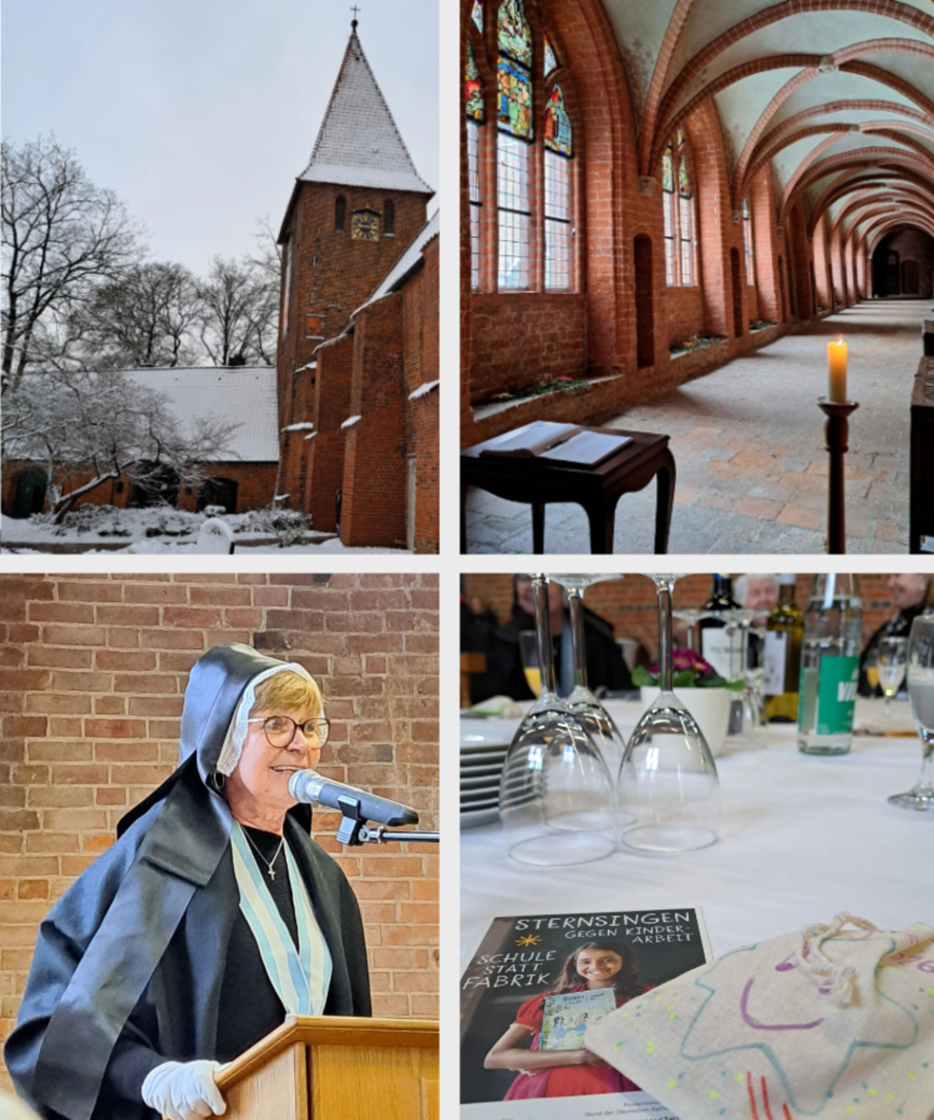 Unter den Gästen, die sich anschließend im Refektorium des Klosters einfanden, waren neben Vertreter*innen von Kommunen, Vereinen und Organisationen viele Freundinnen und Freunde, die sich dem Kloster verbunden fühlen. Gemeinsam mit dem Konvent des Klosters wollten sie das Neue Jahr begrüßen. Wie es schon Tradition ist, traten zu Beginn die Sternsinger auf, die in diesem Jahr für Kinder in Bangladesch sammelten.