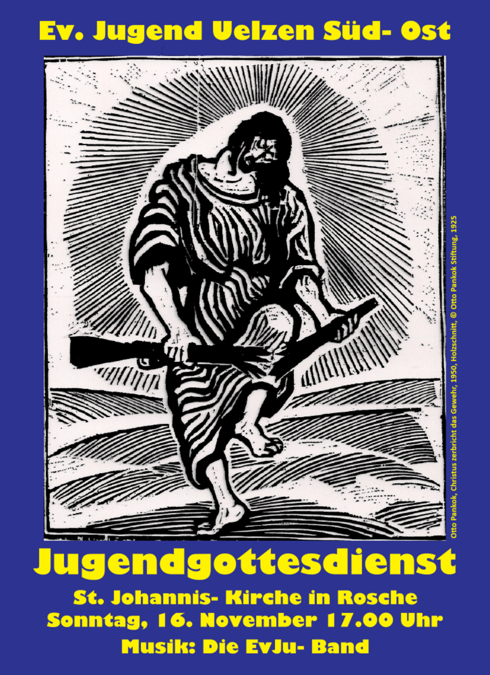 Der diesjährige Friedensgottesdienst der Evangelischen Jugend am Sonntag, 16. November (Volkstrauertag), um 17 Uhr in der St.-Johannis-Kirche Rosche wird von Jugendlichen aus der Region Süd-Ost unseres Kirchenkreises vorbereitet.