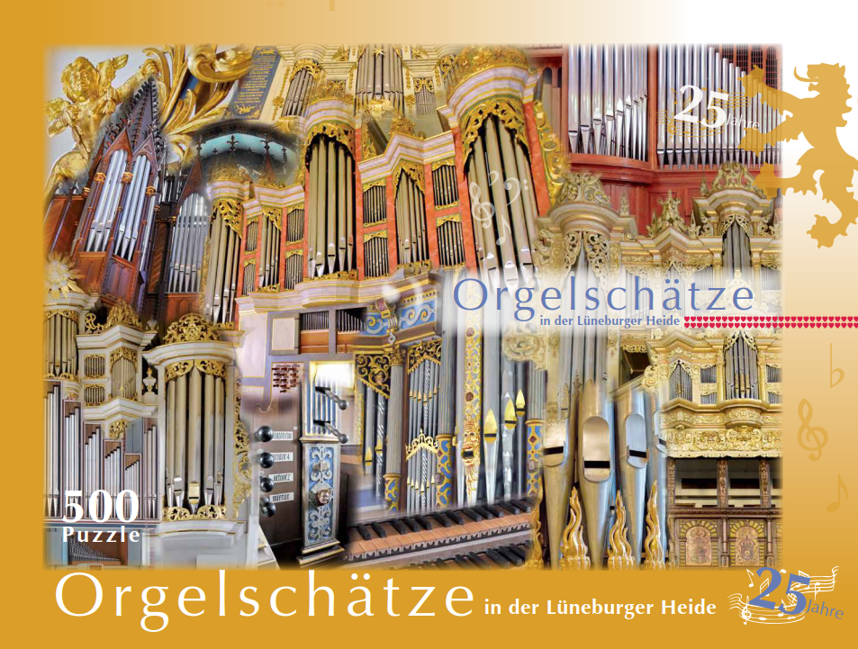Schließlich stellte Almuth Kölsch, Kulturmanagerin und Referentin beim Lüneburgischen Landschaftsverband, das „Orgelschätze“-Puzzle vor, das eigens zum 25-jährigen Jubiläum erschienen ist und neben den Konzerten, CDs und Videofeatures nun ein neues Vermittlungsangebot im Blick auf die „Orgelkschätze“ darstelle. Das 500-teilige Puzzle ist eine Collage von acht ausgewählten Orgeln der Lüneburger Heide (darunter auch die Uelzener St.-Marien-Orgel). - Das Besondere: Ein QR-Code auf der Verpackung führt zu einer digitalen Übersicht mit Steckbriefen, Fotos und Klangbeispielen der abgebildeten Orgeln.